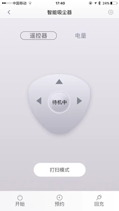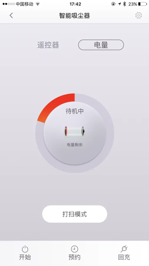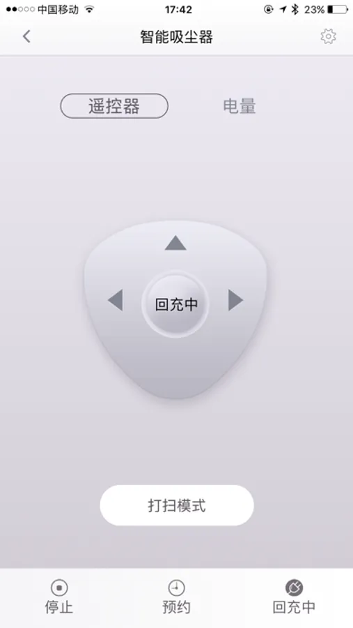 通过松下智能吸尘器APP(蓝牙)的设计开发,用户可以通过操作APP在手机端控制智能吸尘器,对智能吸尘器的打扫模式选择、位置移动及回充进行控制,同时还增加了电量显示、尘螨显示、预约打扫等功能以满足顾客对APP操控需求。