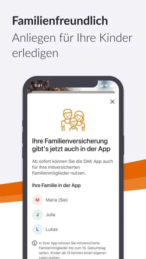 • Familien-Service: Erledigen Sie Anliegen Ihrer familienversicherten Kinder bequem per App.