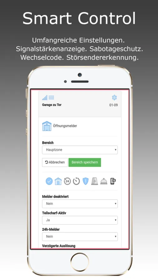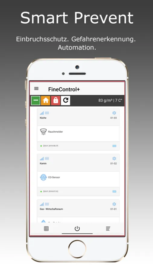 receive push notifications, e-mails, short messages and calls if a alarm or warning event occurs.