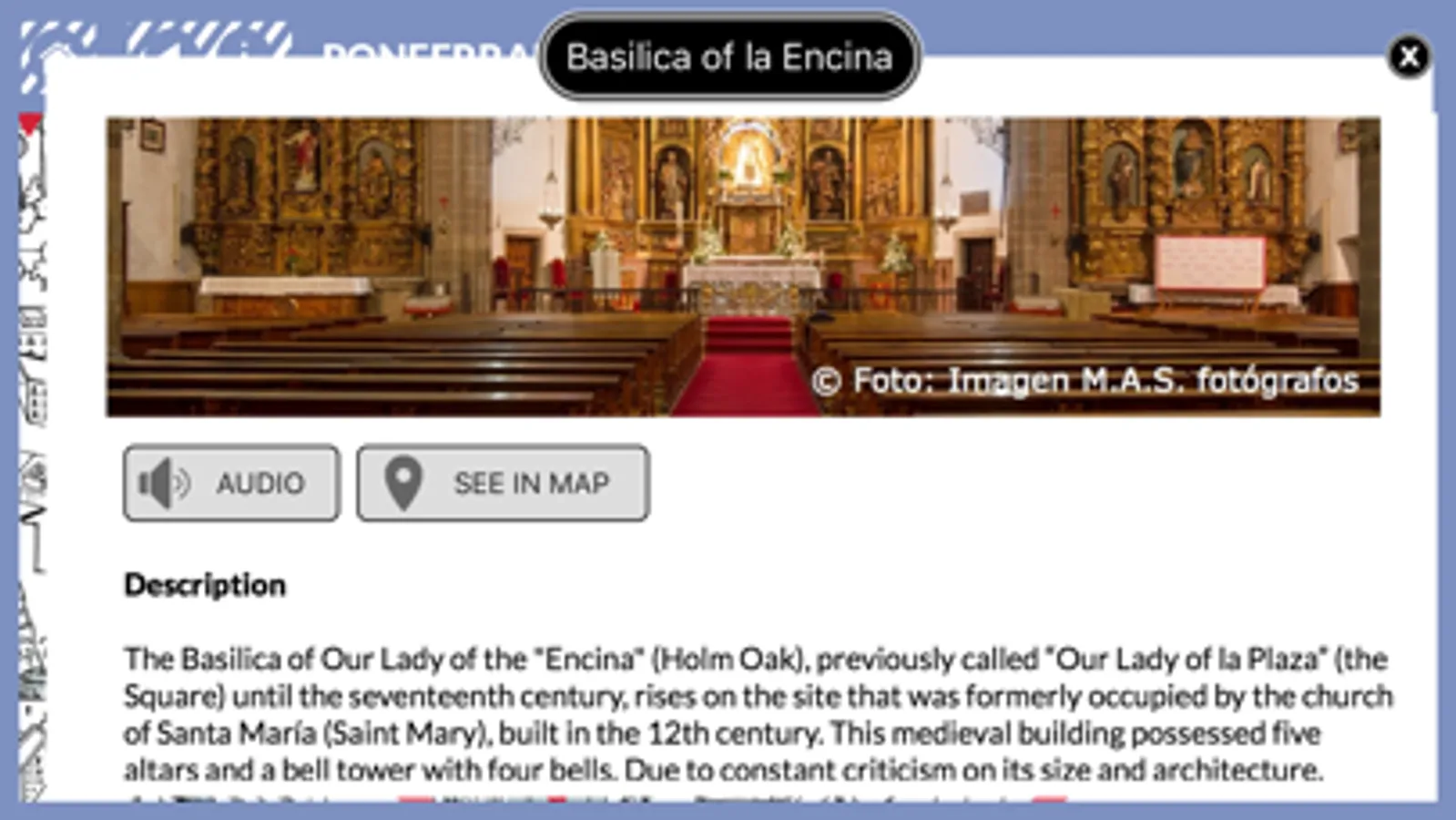 This is a new tourist guide of the city of Ponferrada and its municipality, thought and developed to satisfy the curiosity of visitors and offer them a general view of the tourist wealth of this city and its villages. The municipality of Ponferrada is formed by the capital of the region of El Bierzo, Ponferrada, and thirty-four localities, between neighbourhoods and villages, which increase and diversify the tourist offer of this area. In numbers, 283 square kilometres and almost 70.000 inhabitants. Through a brief but intense tour, we can know its monuments, its valleys and mountains, its events and its gastronomic wealth. A huge number of places, feelings and unique moments are waiting for you.