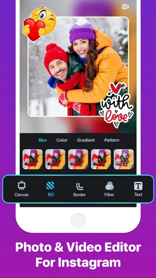◉ Creative Borders: Give your pic or video a border to make it stand out. You can keep it simple with a square, or experiment with heart, circle, many pointed stars and more. Your friends will be amazed!