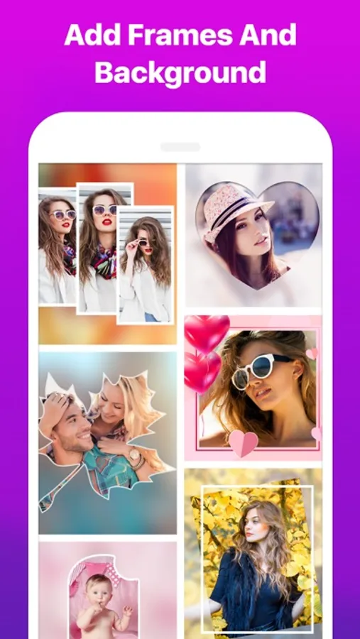 Use Awesome filters, blur backgrounds, stunning Shapes, pattern borders, frames, stickers and text. And High resolution output.