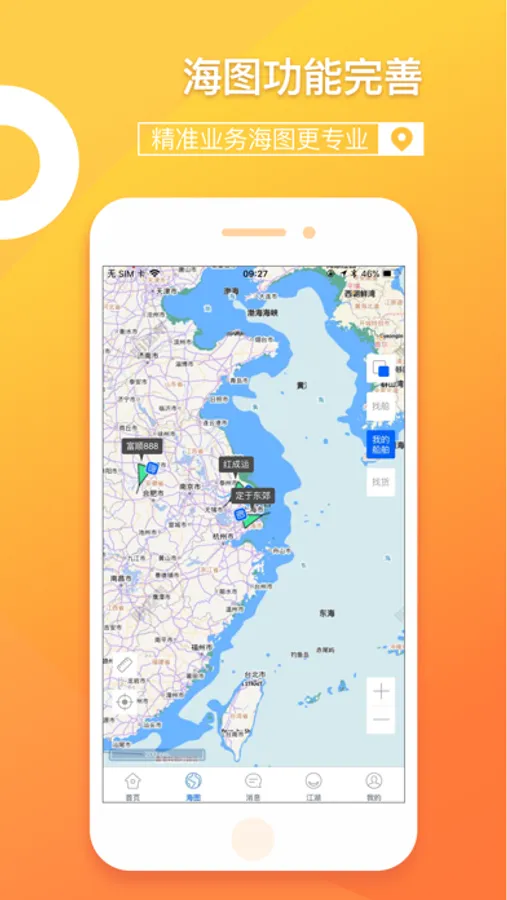 业务海图:船运帮创新的业务海图功能,可一次性显示出所有在运或管理船舶的船位,不再一艘一艘输入查询,物流信息一手掌握。