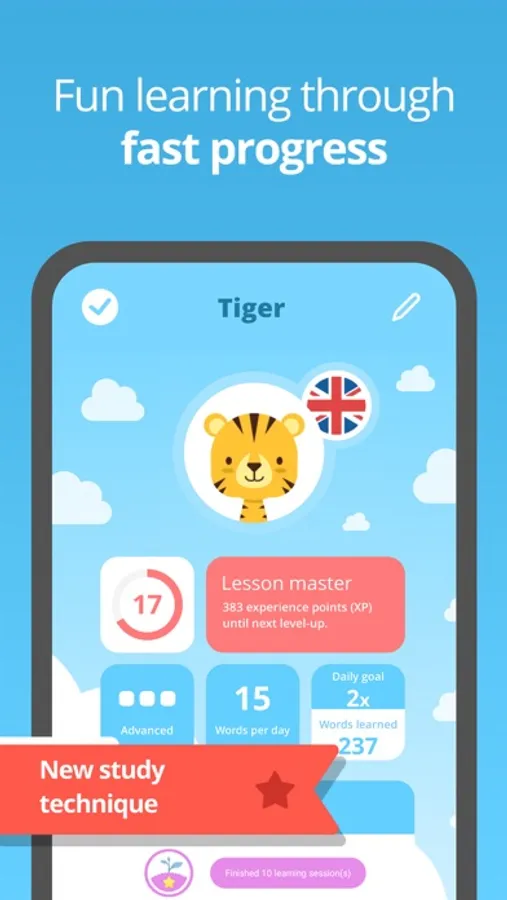 The app supports children through various exercises such as ▶learning vocabulary, ▶sentence structure and ▶grammar as well as ▶pronunciation and ▶spelling. Their knowledge is built up and deepened step by step. In addition, you can create your own flashcards for learning, which makes the app an ideal companion for school lessons.