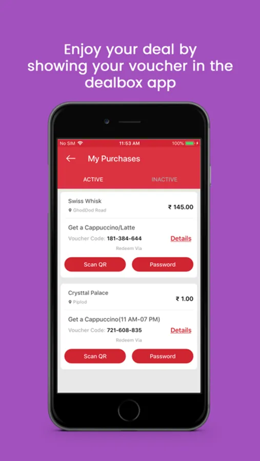 Dealbox brings the best offers near you. On the app you can discover restaurants, spas, gyms, salons and activities around you, buy offers and deals from them. Now save money every time you visit a restaurant or spa, a movie or just to have a hair cut. Stay tuned with Dealbox for more awesome deals. Currently you will find deals and offers only for Surat, Gujarat. We would love to come to your city at soonest.
