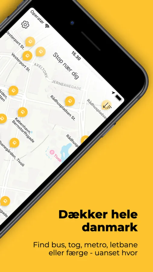• Se afgange med offentlig transport - bare ved at åbne appen