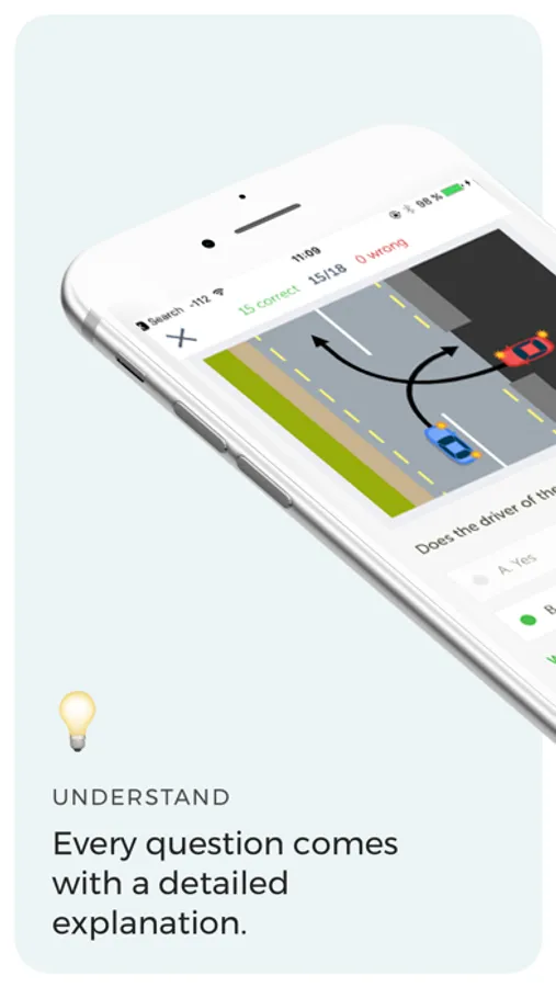 Each questions comes with an explanation which lets you leave the Road Code book at home. Perfect for practicing for your learners theory test on the go.
