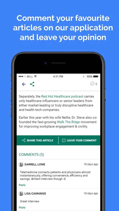 • Share articles with your friend with a tap