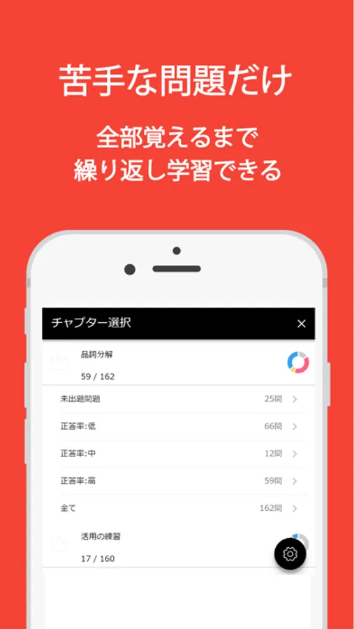学習履歴が記録されるので、正答率の低い問題のみを効率よく学習することが可能です。