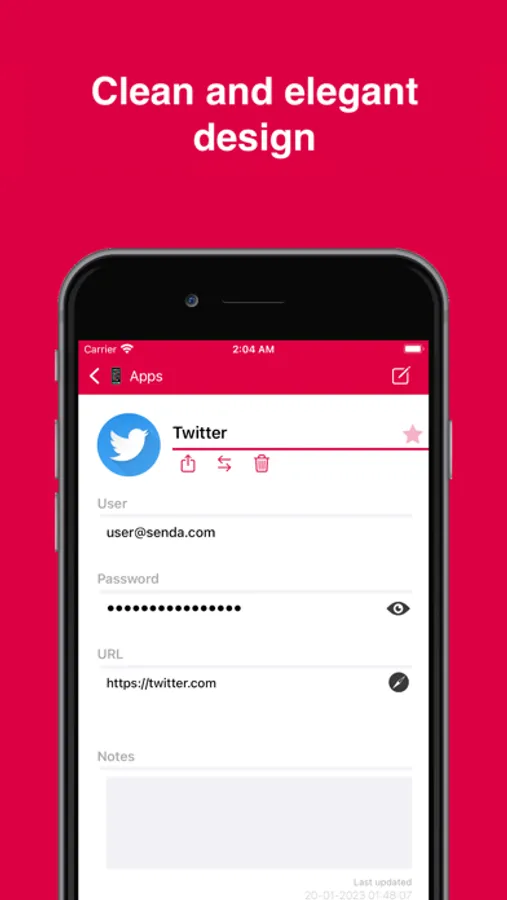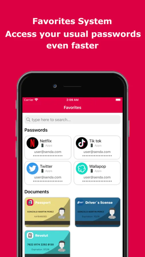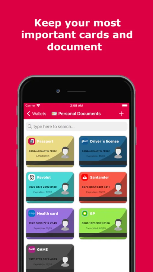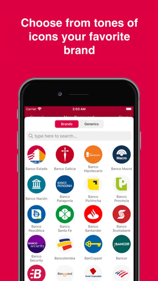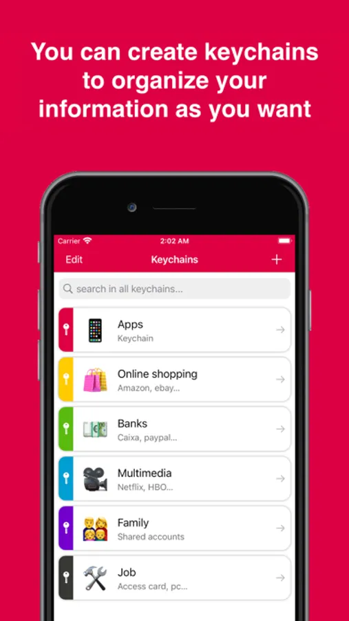 Create as many keychains as you need to organize all your information as you want and choose from tones of icons your favorite brand.