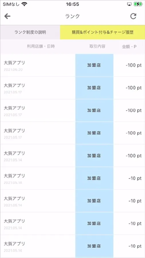 ・履歴の確認が可能です。支払い・チャージ金額・ポイント付与が確認できます