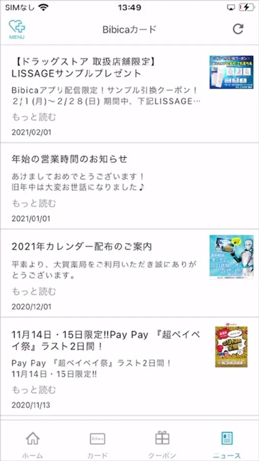 ・Bibicaカードのバーコード表示ができるので、カードの持ち歩き不要!便利です!