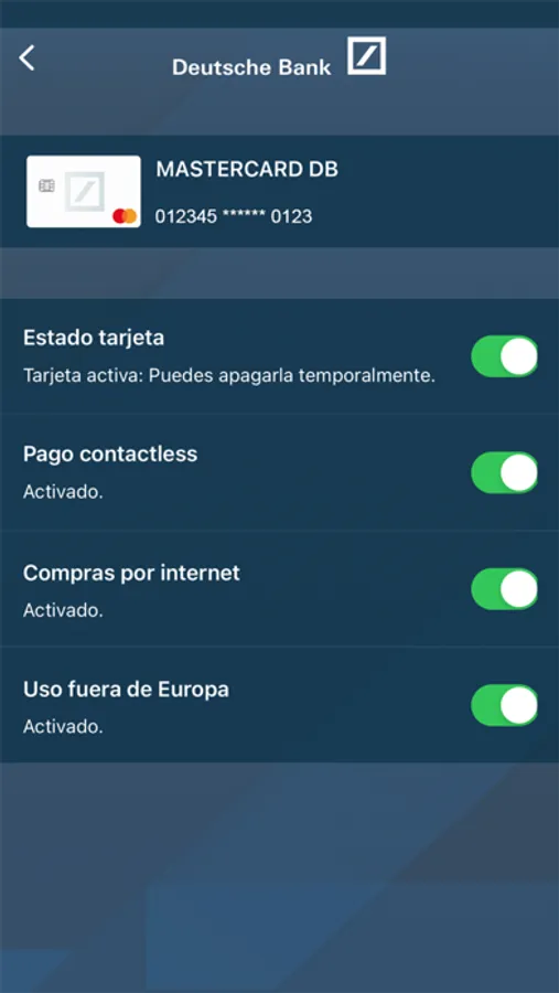 - Activar y desactivar temporalmente tus tarjetas y decidir donde podrás utilizarlas.