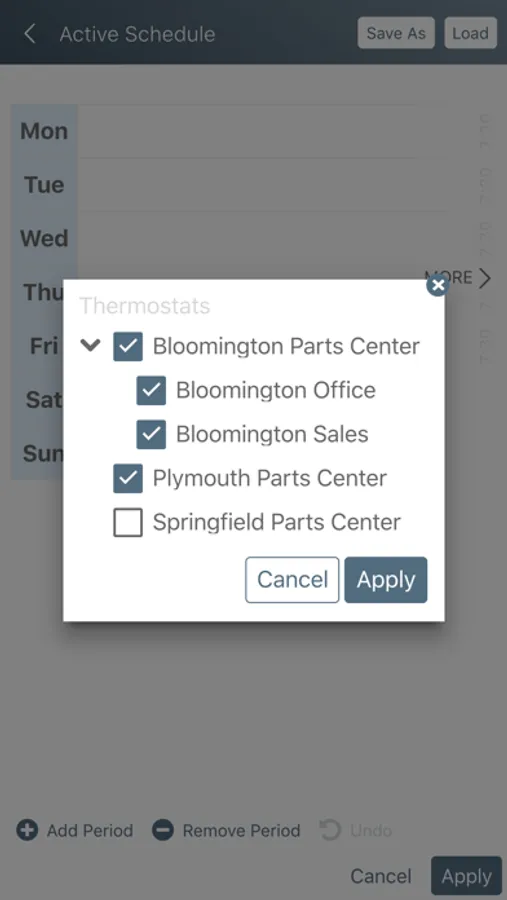 Schedule and Setpoint changes can be made to multiple systems at the same time.