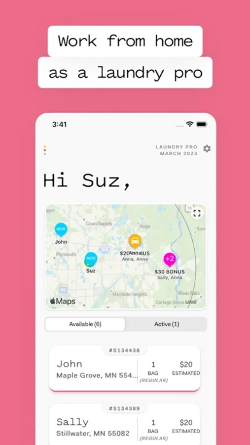 3. Pick up, launder, return — repeat. Start turning laundry piles into perfection (and cash). Wash, dry, fold and return the next day.