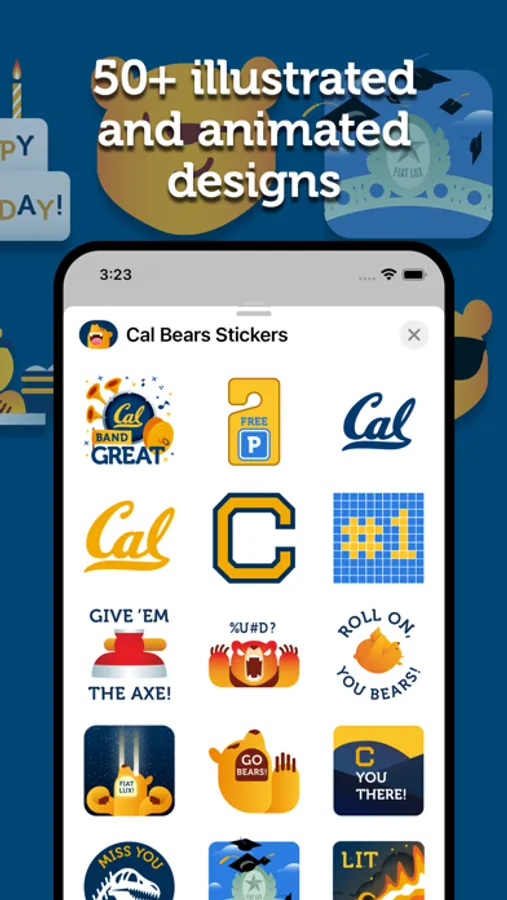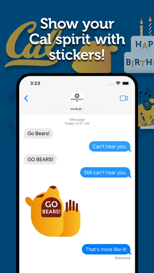 Talk to your fellow Bears in a language they can understand with the Cal Bears Stickers pack. Send off a rousing “Go Bears!” or a powerful “Fiat Lux!” Ask your friends to meet you for coffee and then apologize for running on “Berkeley Time.” Use these stickers to share your Cal spirit in iMessage and texts. Roll on, you Bears!