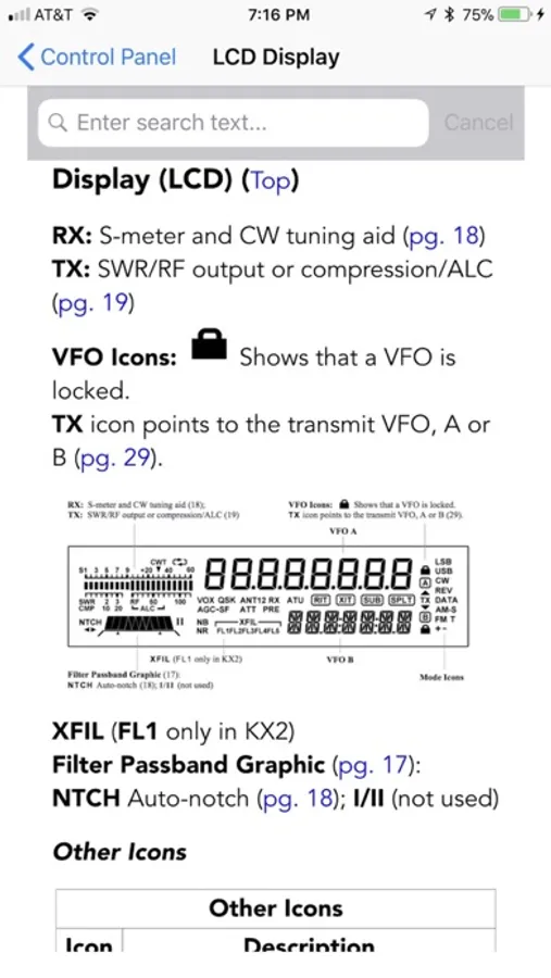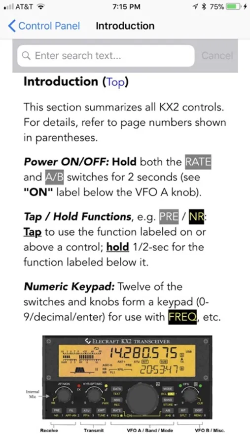 * Tapping on any of the page number links provided in the KX2 Micro Manual will instantly take you to the referenced page number. No more leafing through paper manuals or scrolling up and down in PDF files.