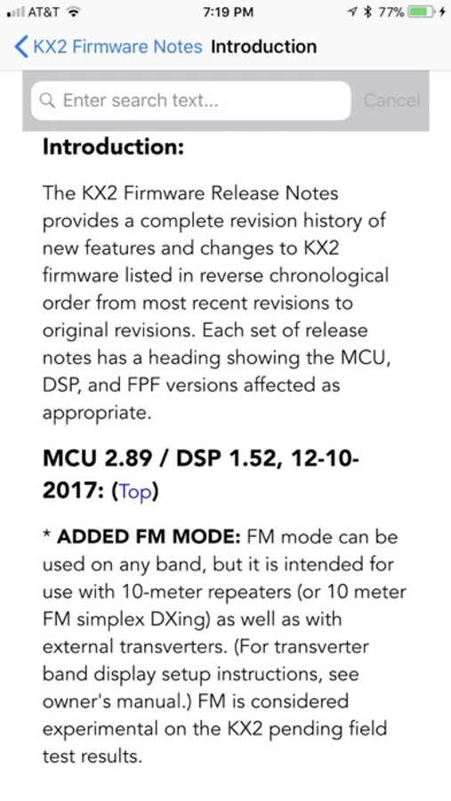 * The application includes all Firmware Release Notes documented since revision A7 of the KX2 Owner's Manual was published December 18, 2017.