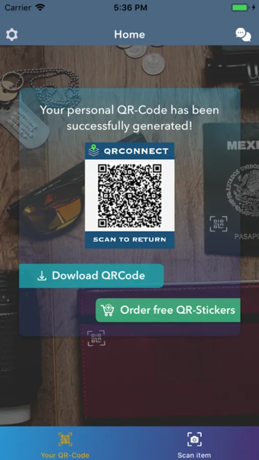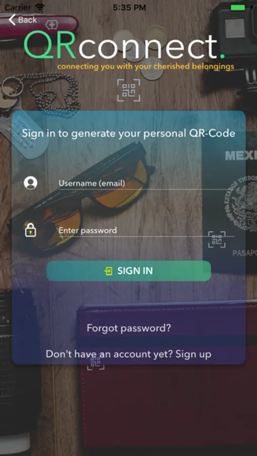Qr-connect helps you find you lost items through a personalized QR-code generated by the app for you. This personalized QR-code ties your belongings to your phone through QR-technology.
