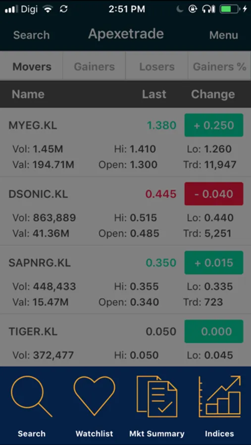 Build your own customized watchlist and keep track of stock quotes, and futures - all synced with your Apexetrade account.