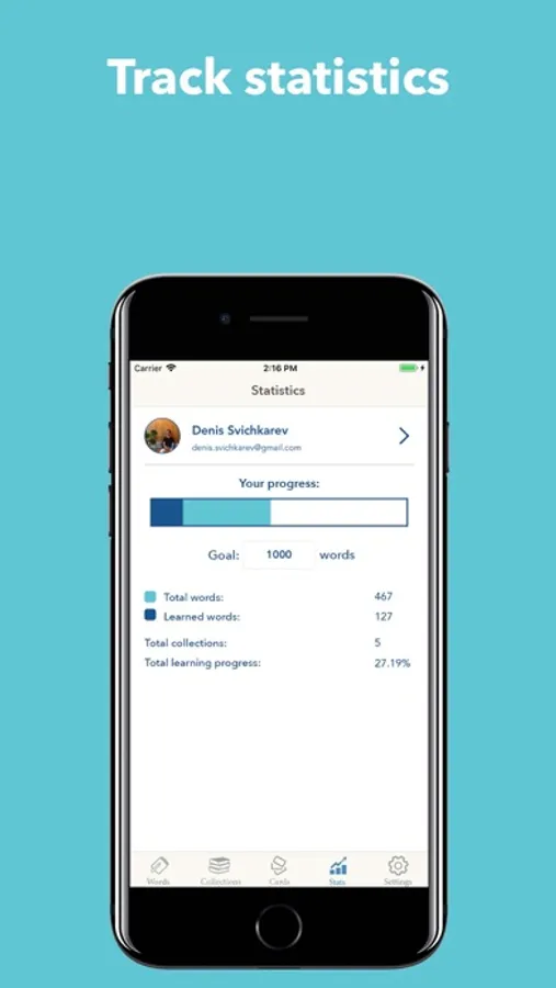 The purpose of the application is to expand your German vocabulary. To track the learning statistics, set your goal in the form of a certain number of words and achieve it easily.