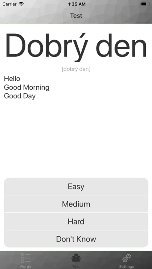 Words App will schedule notifications in the interval you set. Which means you don't ever have to open the app again! Simply do whatever you usually do and when you receive notification with Word to test, choose the correct answer from available options.