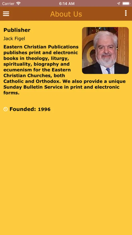 This app provides daily prayers according to the Byzantine Christian tradition, along with daily reflections, weekly images, and monthly spiritual essays from Eastern Christian Publications.
