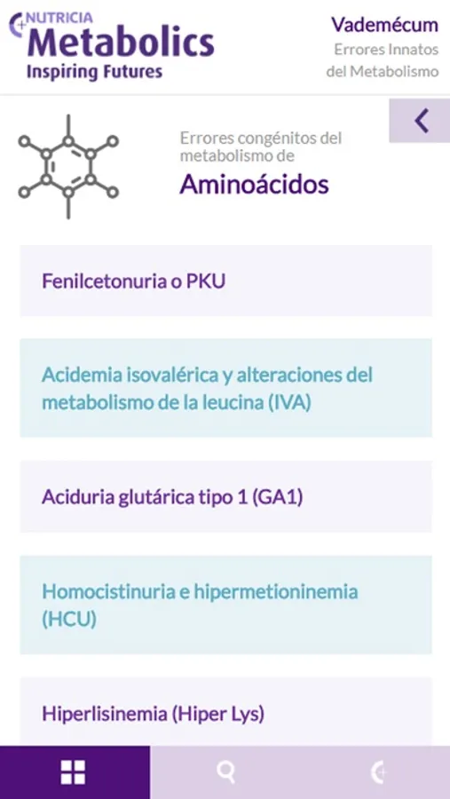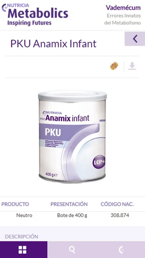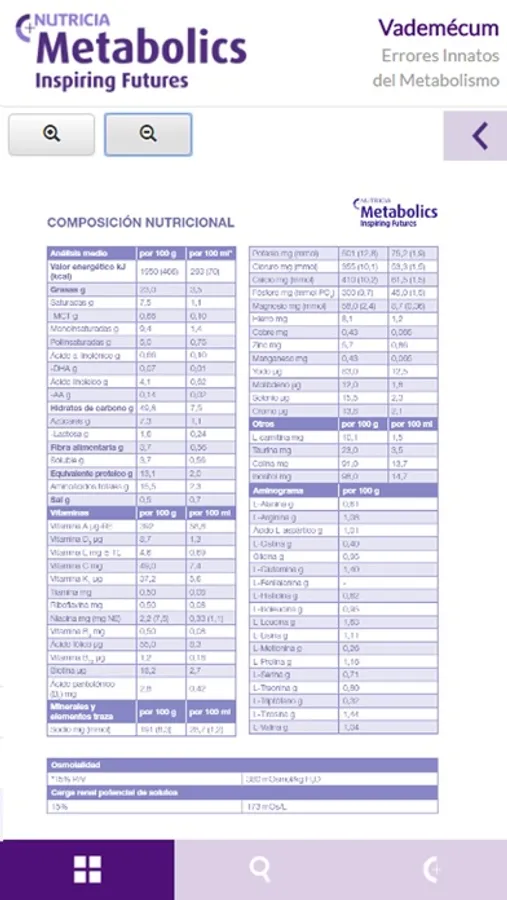 Completa aplicación dirigida a profesionales del ámbito sanitario que permite la consulta del Vademécum de productos Nutricia para pacientes metabólicos.