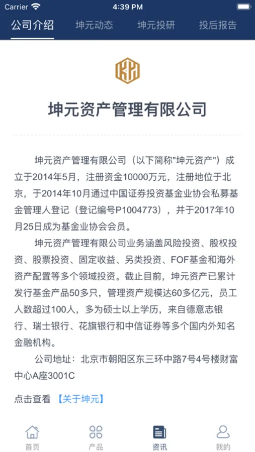 坤元资产管理有限公司成立于2014年5月,注册资金5000万元,注册地位于北京,于2014年10月通过中国证券投资基金业协会私募基金管理人登记,登记编号P1004773,是在基金业协会备案的私募基金管理人。