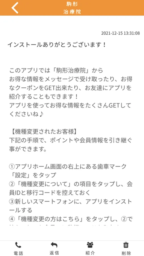 駒形治療院のアプリをSNSを通じてお友達に紹介する事ができます。