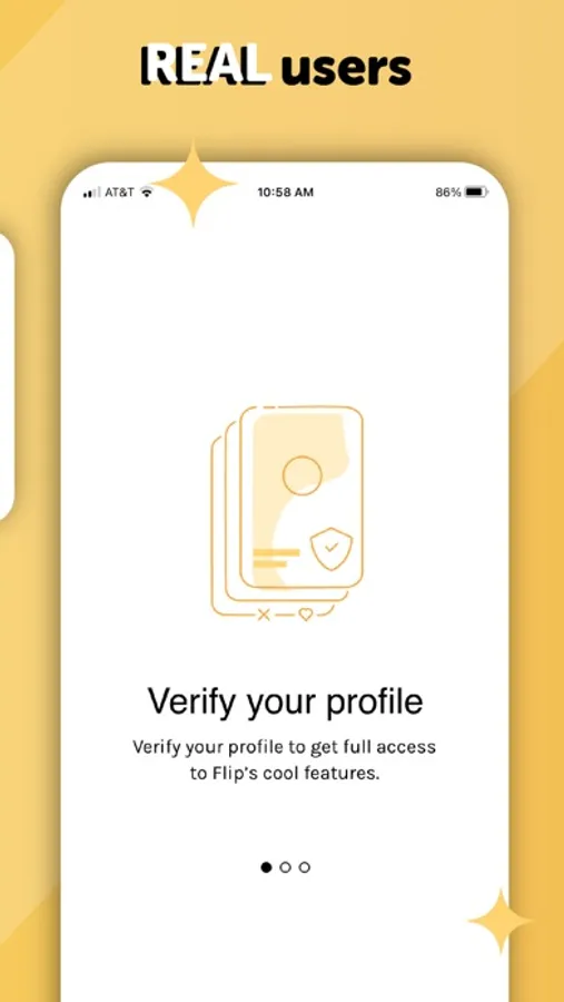 Simply snap a copy of yourself in the same pose, send it to us and you’re ready to start flipping. And don’t worry: we will never post your verification photo on your profile.