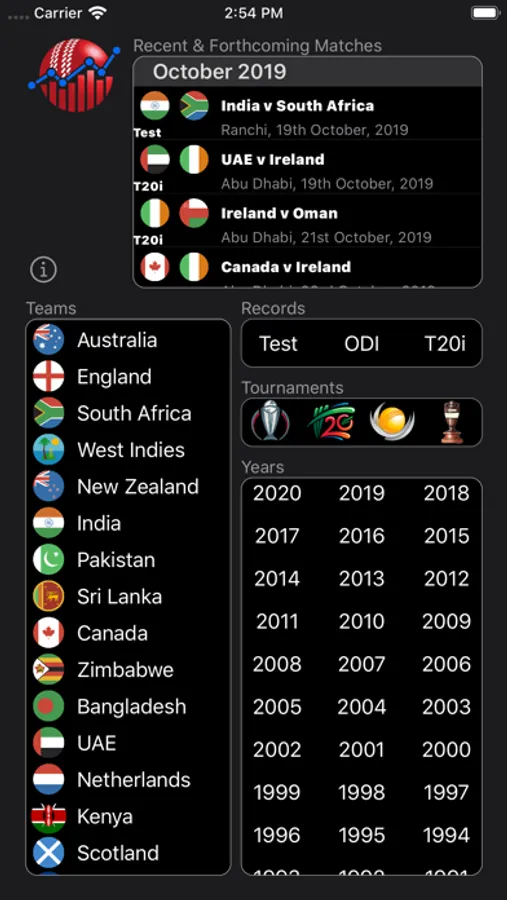 Every card from every Test, every ODI and every T20i every played.