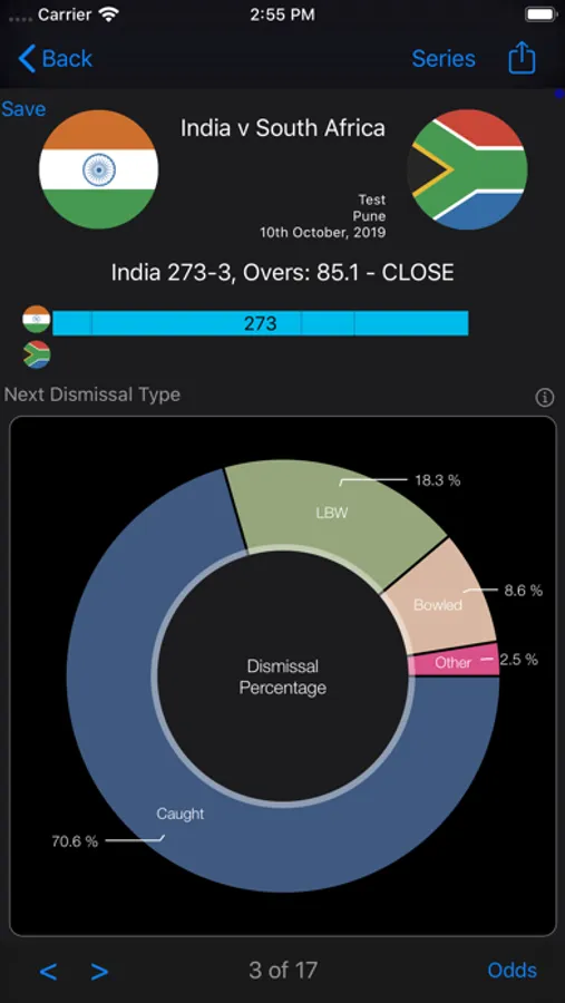 Live, in-play, stats and predictive analysis. Real-time analysis of in-play cricket matches. Understand who's winning, see players' current form, see historic wickets at the venue.