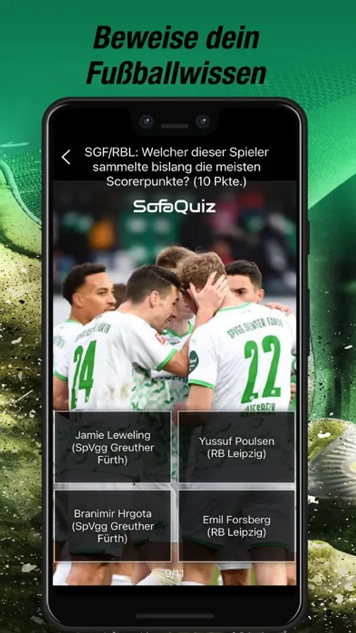 Bei FanQ hast du die Möglichkeit dein Fußballwissen unter Beweis zu stellen. Ob im wöchentlichen Sofa-Quiz oder in der FanQ-Fan-Rangliste, unsere App hat viele Features bei denen du dich mit anderen Fans und Freunden messen kannst.