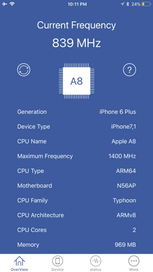 CPU Dasher is a smart app which can find the key informations of your device.There are three main features: