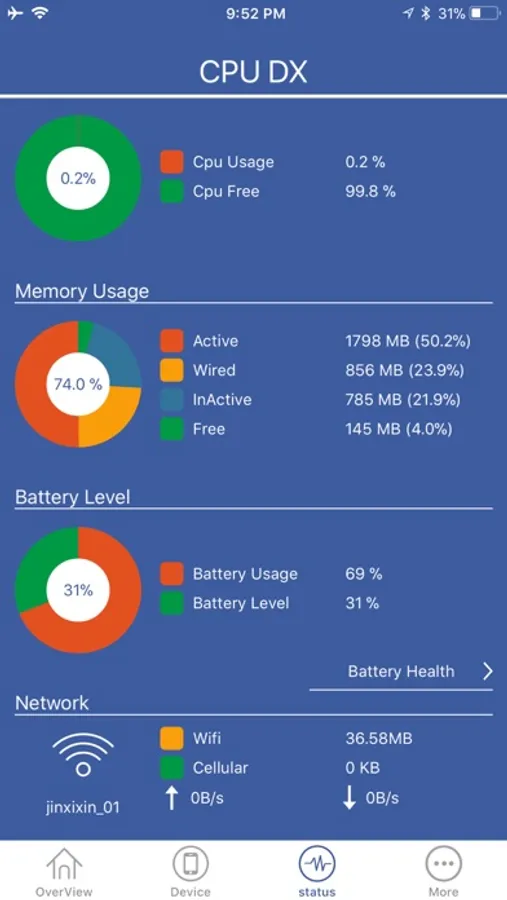 7. System status, like Cpu Usage,memory usage, and disk usage, the real speed of network.