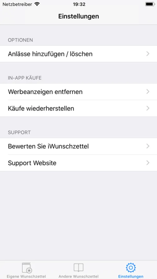One of the main differences to other apps is, that you do not have to register for an account by email or whatever. The shareing of the wish lists will work through messages which you can send by email, sms, whatsapp or whatever.