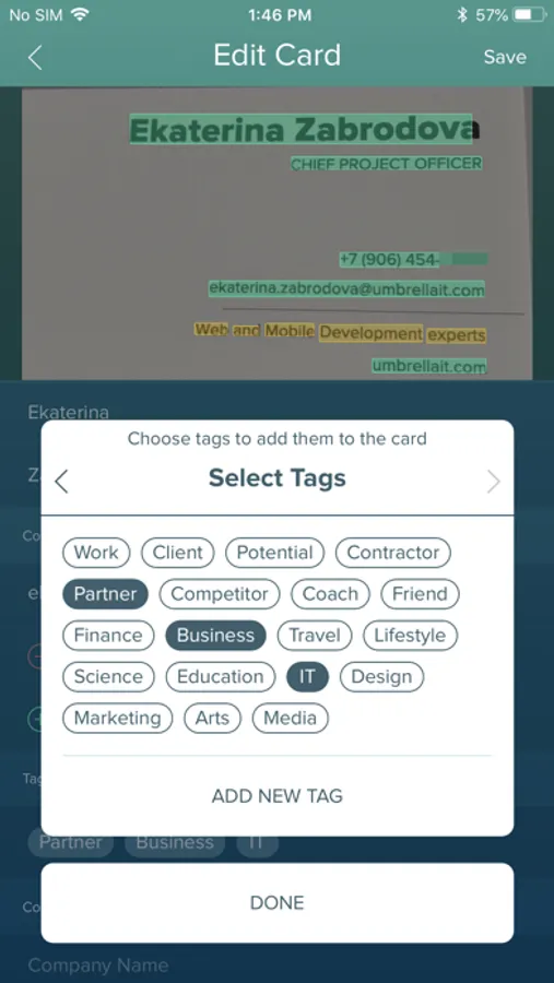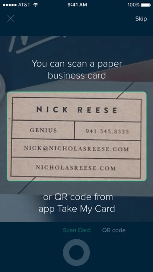 - Scan paper business cards using your phone's camera, fields are detected automatically!