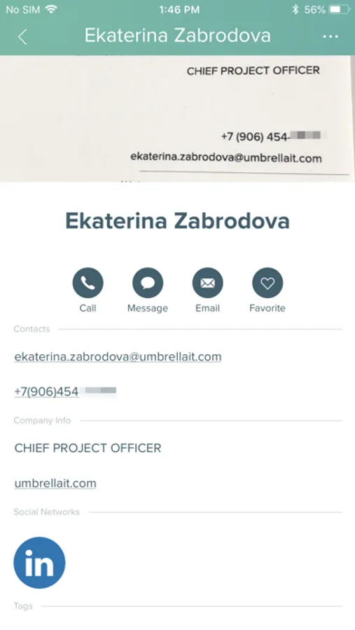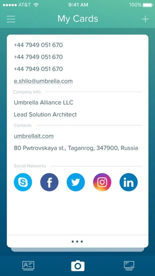 In addition, we offer you a possibility to scan paper business cards and save them in the App.