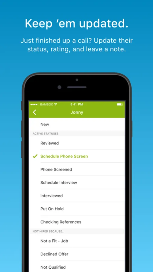 BambooHR Hiring is a mobile recruiting app available for BambooHR Applicant Tracking System (ATS) users.