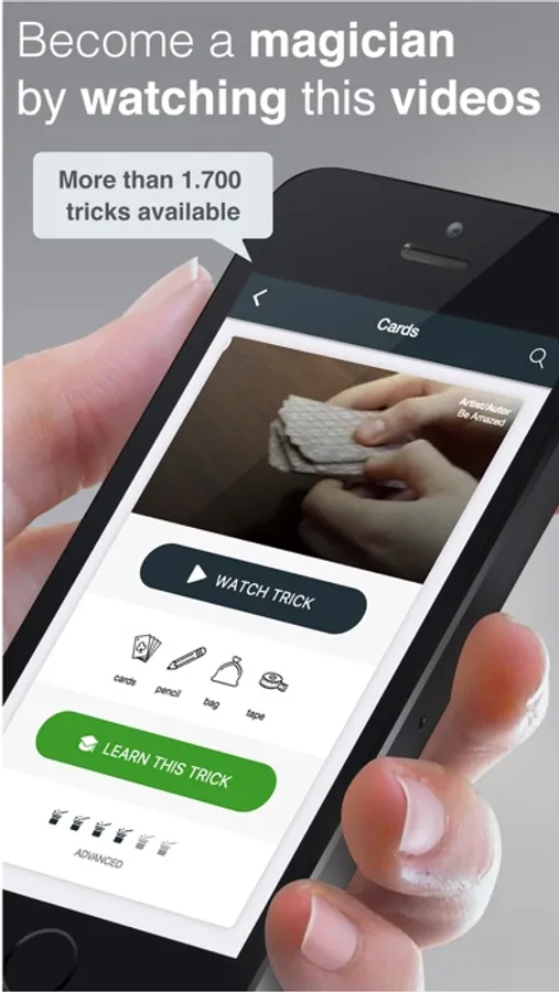 In the magician-trainer pro app, you find even more magician videos. We show you how to become a familiar with all magic tricks. Become a magician by watching and learning the videos. More than 1000 tricks available. There aren't only tricks for beginners but also magictricks for advanced people.