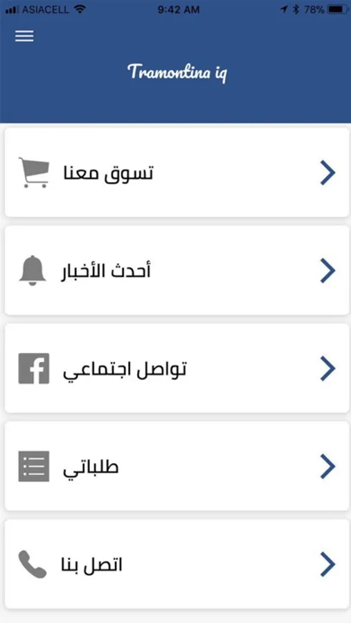 تطبيق مخصص لعرض منتجات شركة ترامونتينا مع امكانية عمل الطلب من خلال التطبيق مع امكانية العمل والاطلاع على جميع المنتجات والتواصل مع العملاء