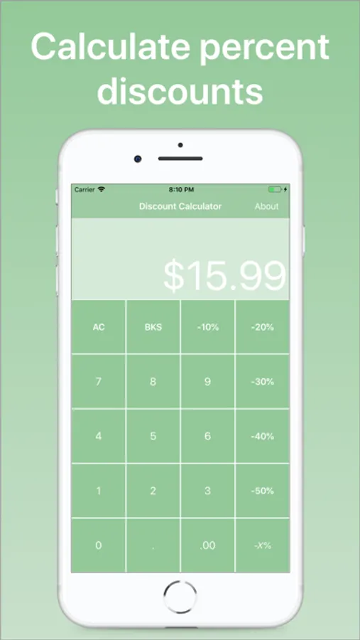 With a discount calculator, you open the app and enter in the price of the item then simply press the percentage button that corresponds to the percent off amount. Calculating discounts just got so much easier!