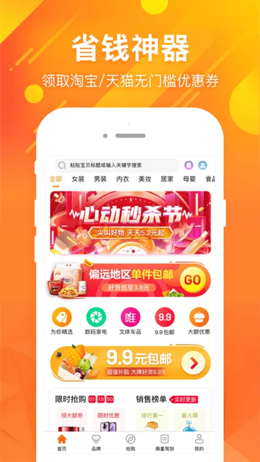 女装、男装、鞋包、美妆、护肤、家居、母婴、零食、数码...优惠一网打尽