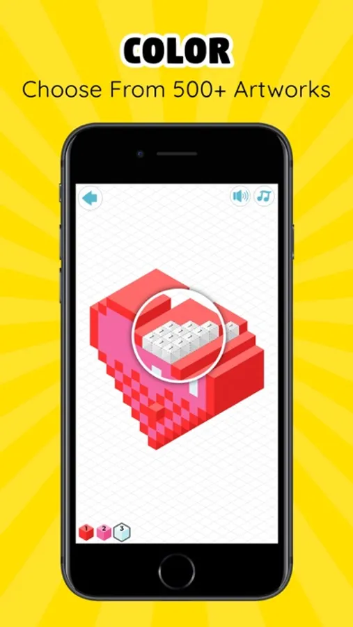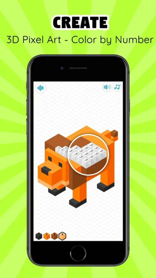 Create masterpieces of 3D pixel art using colors. Choose from 100+ different things such as a tree, chair, bench, computer, bag, etc. and animals such as lion, elephant, cow, giraffe, and much more.