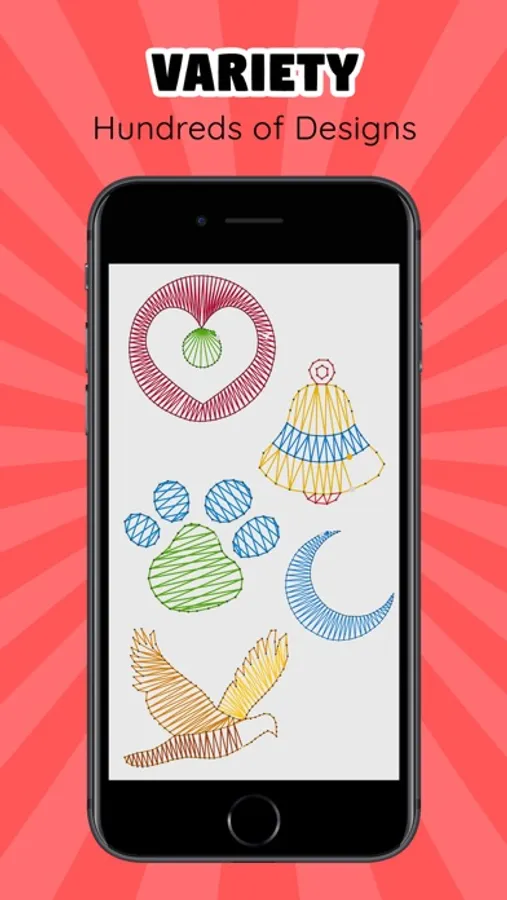 Join the colorful threads to form beautiful patterns and objects. There are over 15 objects to draw.