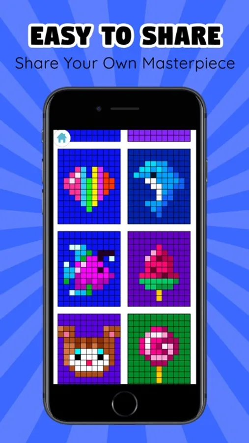 Fill the pixels as shown in the smaller picture. Select your favorite picture and start!