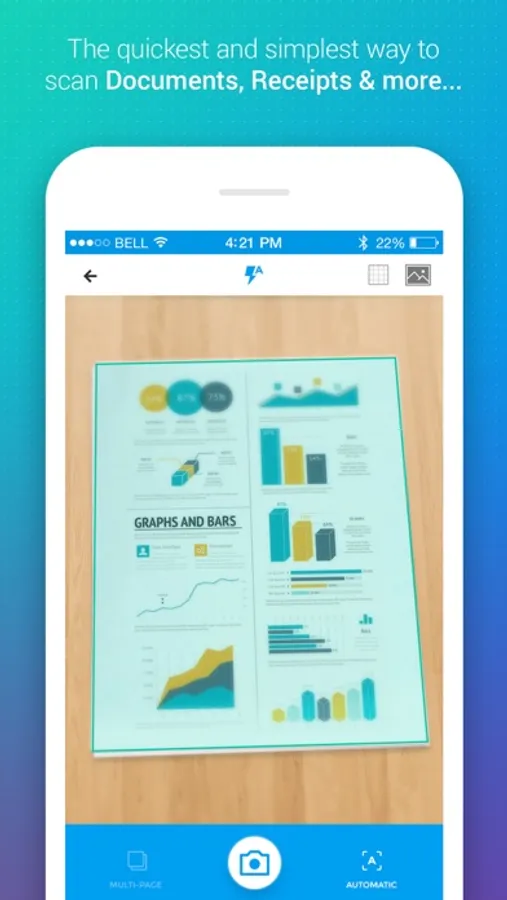 * Auto Capture - The scanner app automatically detects documents or file borders and helps you precise extract scanned documents. Use your phone camera to scan pdf docs, create pdf scans of files, receipts, notes etc.