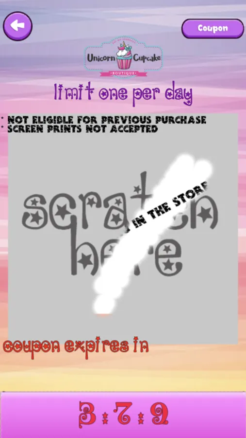 Three fun activities, including a unicorn name game, fun coloring game, and coupon scratch-off game you can use in our Unicorn Cupcake Boutique in Scottsdale, AZ.