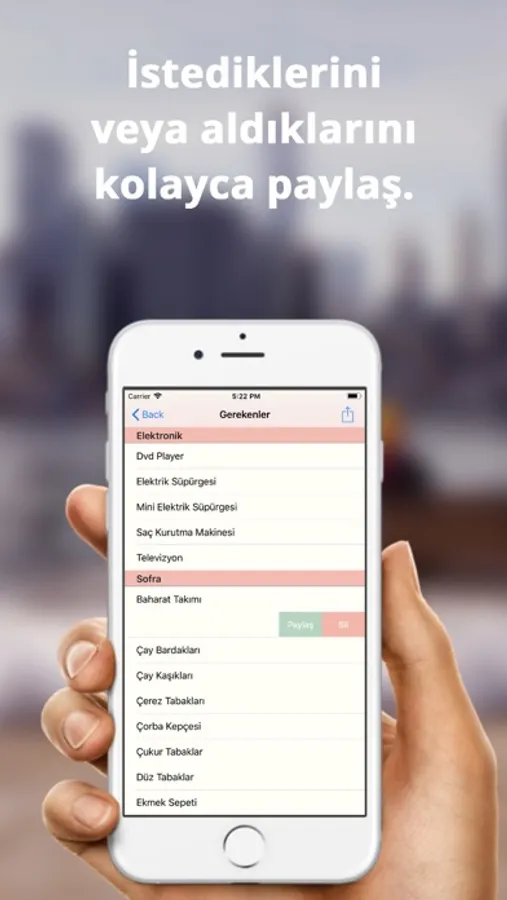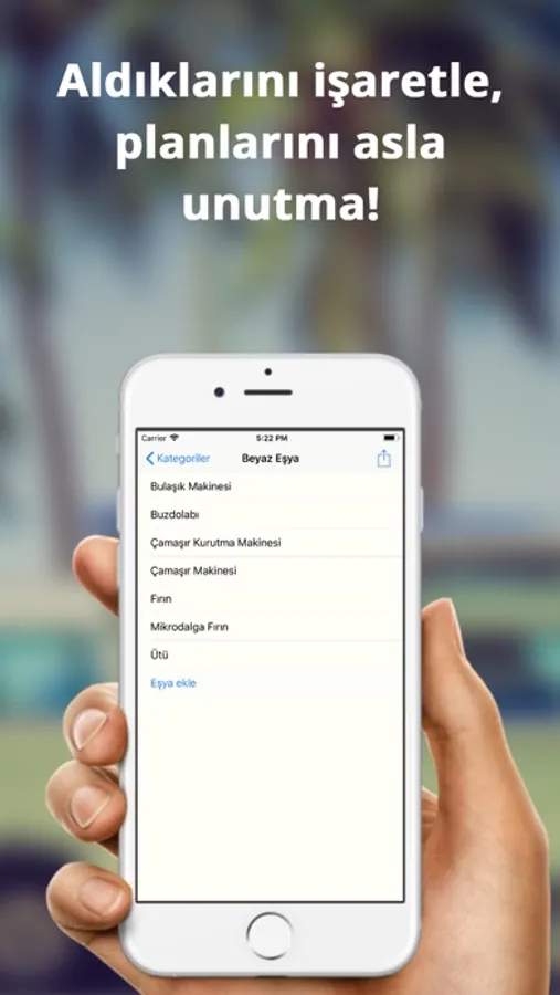 150'den fazla eşya içeren listeyi kullanarak aldığınız ve alacağınız eşyaları kolayca işaretleyin. Listeye tekrar bakmak istediğinizde aradığınız eşyaları kolayca bulun. Artık almayı kararlaştırdığınız eşyaları unutmayacaksınız.